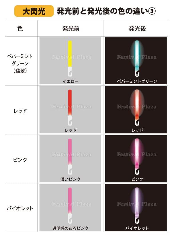 発光色:極オレンジ/発光時間:約2~3分25本入×2袋売 (個別包装されていない業務用バルクタイプ)/発光体サイズ:φ15x180mmルミカ 大閃光 従来タイプ(コンベンショナルタイプ)が購入出来るのは当店だけ!!ルミカ 大閃光 arc(アーク)タイプは、固い/ゴミが出る/四角い形状で先端が重いので、指の間に入れると不安定になるなど、意外と不評が出ている中、お客様から従来型の「コンベンショナル タイプ」の復活のご意見が多く、ルミカ社とフェスティバルプラザのコラボで復活!!指の間に入れても安定しやすく、複数本持ち(バルログ持ち)にもおすすめです!開封の手間が少なく、お得なバルクタイプ! (業務用)まとめて使う場合や、個別包装が必要ない場合におすすめです!1曲完全燃焼!すっごくまぶしいルミカライト♪ライブ、イベント会場をファンタスティックな光で演出するコンサートライトの決定版!★国内最高級品質の発光体(サイリューム)、ルミカ社の商品となります。同サイズ商品としては、明るさ・発光時間・消費期限どれをとっても国内最高級品質となります。★高品質のルミカ社の商品は氷点下以上の気温なら光ります。ノンブランド(ルミカ社以外)ですと、通常気温が18度以下になると、著しく発光しにくくなってしまいます。光らない場合もあります。★気温が氷点下の場所ですと、中の薬品同士の化学反応が遅くなりますので、発光時間は延びますが発光力は落ちます。逆に暖かい場所だと反応が早くなり発光時間は短くなりますが、常温でのご利用であれば特に光らない等の問題はございません。【免責事項】メーカーによる商品リニューアルに伴いパッケージ(内容量も含む)変更が行われた場合、新パッケージでお届け致します事ご了承願います。