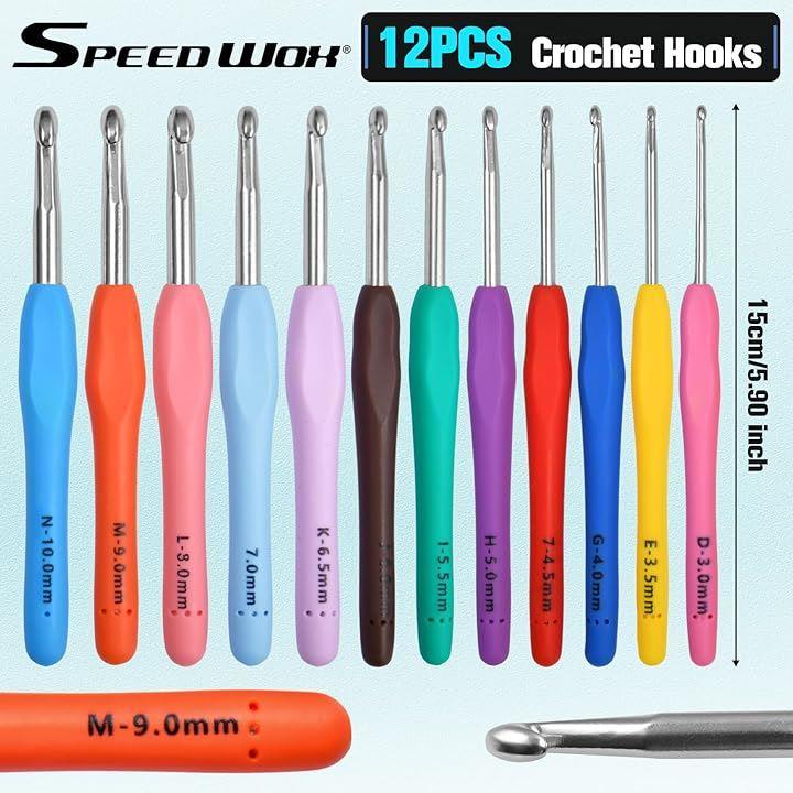 仕様:「セット内容」このかぎ針キット(50本)には、かぎ針3~10mmが12本、レースかぎ針0.5~2.75mmが10本、プレーンマーカー留め具赤、黄、緑、紫、黒が4本、ビッグアイズステッチ7cm-オレンジが2本、ビッグアイズステッチ5.5cm-紫が2本、ビッグアイズステッチ9cm-緑が2本、はさみ1本、ソフトレザー定規1本、オーガナイザーバッグ1個が含まれています。
