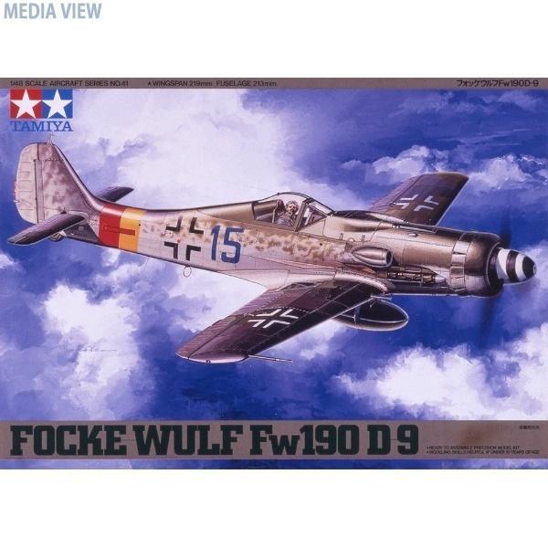 第二次大戦を通して戦い続けたドイツ空軍のフォッケウルフ戦闘機。その各型の中でもエンジンや機体各部の改修により大幅に性能アップし、戦争末期の1944年9月から実戦配備されたFw190D-9戦闘機のプラスチックモデル組み立てキットです。それまでの空冷星型から液冷V型12気筒エンジンに換装して長くなった機首とそれに合わせて延長された胴体後部などD-9の特徴をあますところなくモデル化しました。カウリング内部に環状に装備されたラジエターや開閉選択式のカウルフラップなど、その構造を楽しみながら作って頂けます。キャノピーも開閉を選択可能。パイロットの人形1体と4種類のデカールをセットしました。全長=213 mm。