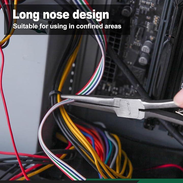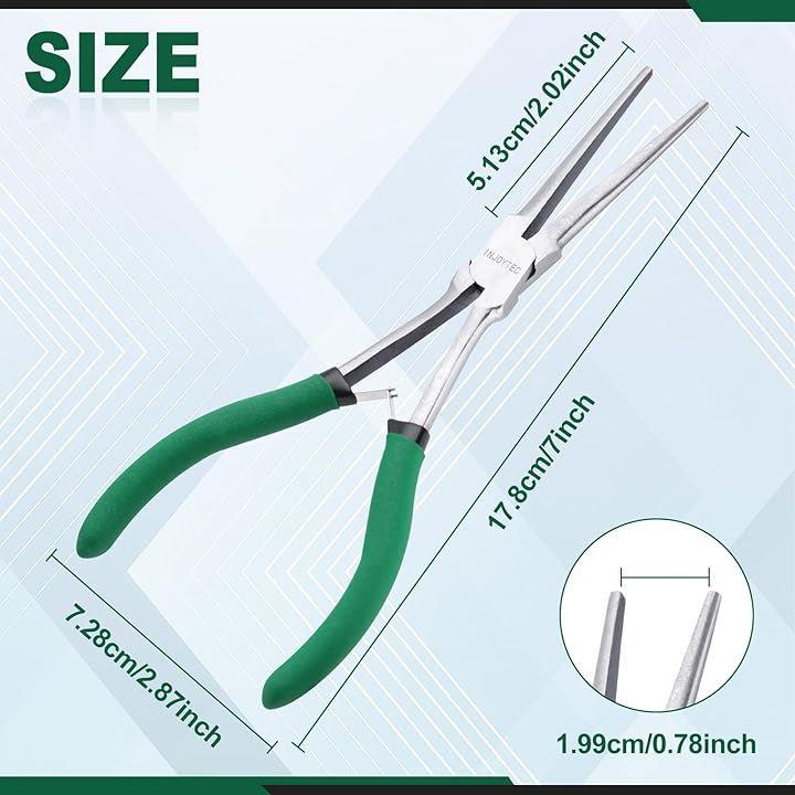 7 ロングリーチニードルノーズプライヤー」「仕様」材質:炭素鋼: 炭素鋼; 表面: 熱処理された表面; 「滑らかな顎」滑らかな顎は傷を防ぐ