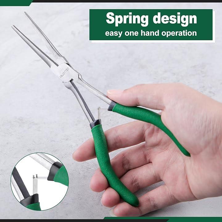 設計: 55mmの延長顎および長い範囲の設計は狭いspaces.Serrated顎に容易なアクセスを提供することができる小さいitems.Springローディングを握るときプライヤーを自然に片手operation.Ergonnomicハンドルのための開いた疲労を減らすために保つ。