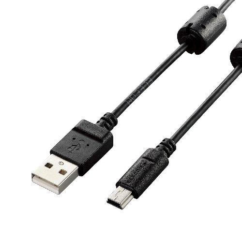 デジタルカメラやデジタルビデオカメラのデータをパソコンに転送できるUSBケーブル。[USB2,0 Standard-A/mini-B] USB2.0 mini-Bを搭載したデジタルカメラやデジタルビデオカメラのデータをパソコンに転送できるUSBケーブルです。 USB2.0規格の伝送速度480Mbpsの高速データ転送に対応しています。 高周波ノイズを吸収する効果があるフェライトコアが付いています。 サビなどに強く信号劣化を抑える金メッキピンを採用しています。 外部ノイズの干渉から信号を保護する2重シールドケーブルを採用しています。 ヨーロッパの「RoHS指令(電器・電子機器に対する特定有害物質の使用制限)」に適合した環境にやさしい製品です。 ケーブルの長さはデスクトップパソコンとの接続に最適な1.5mです。 ●コネクタ形状:USB2.0(Standard-A)オス-USB2.0(mini-B)オス●対応機種:USB2.0(Aタイプ)端子搭載のパソコン、ACアダプタ及びUSB2.0(mini-B)端子搭載のデジタルカメラ、デジタルビデオカメラ●ケーブル長:0.5m●ケーブル太さ:約3.1mm●対応転送速度:最大480Mbps ※理論値●プラグメッキ仕様:金メッキピン●シールド方法:2重シールド●カラー:ブラック