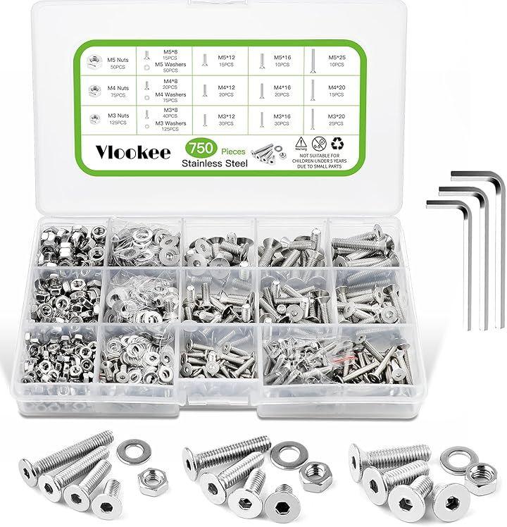 「ボルト ナット セット」このセットには、M3/M4/M5 ネジ、ナット、ワッシャー、六角レンチなど、家庭用の皿六角ネジ 750 本が含まれています。