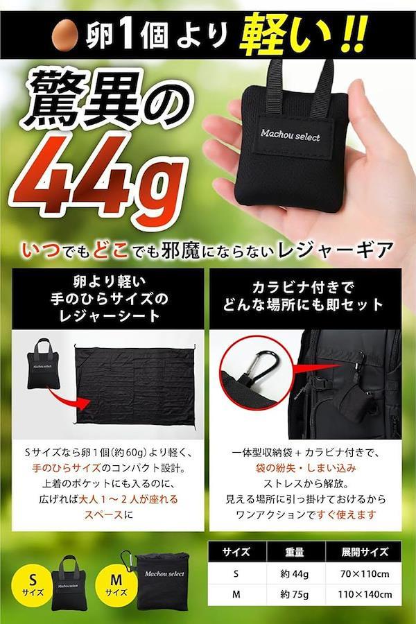 「超軽量コンパクト」Sサイズ(70x110cm)は44g、Mサイズ(110x140cm)は75g。
