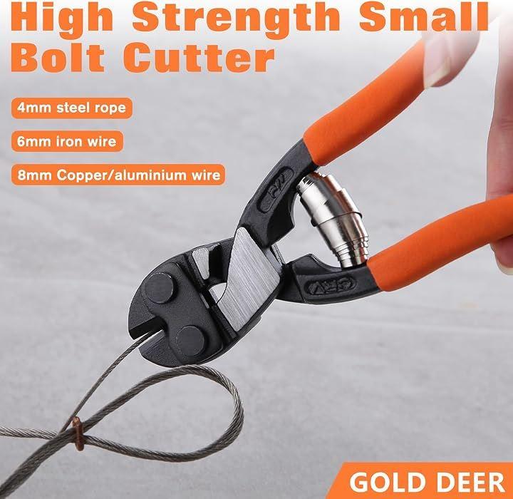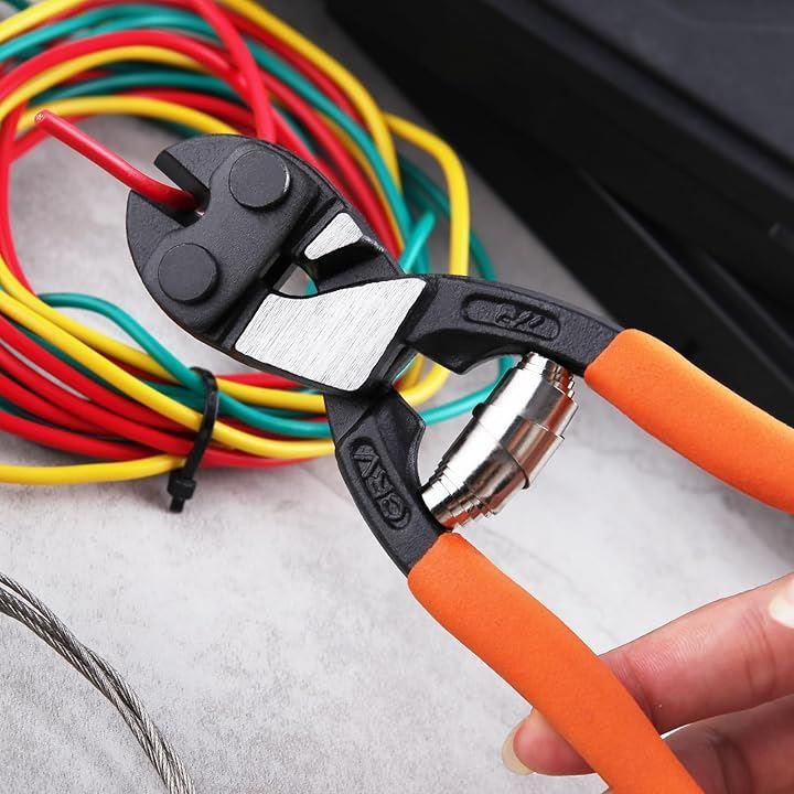「用途」プライヤー開口範囲10mm、4mmワイヤーロープ、6mmワイヤー、8mm銅/アルミワイヤーを切断可能。