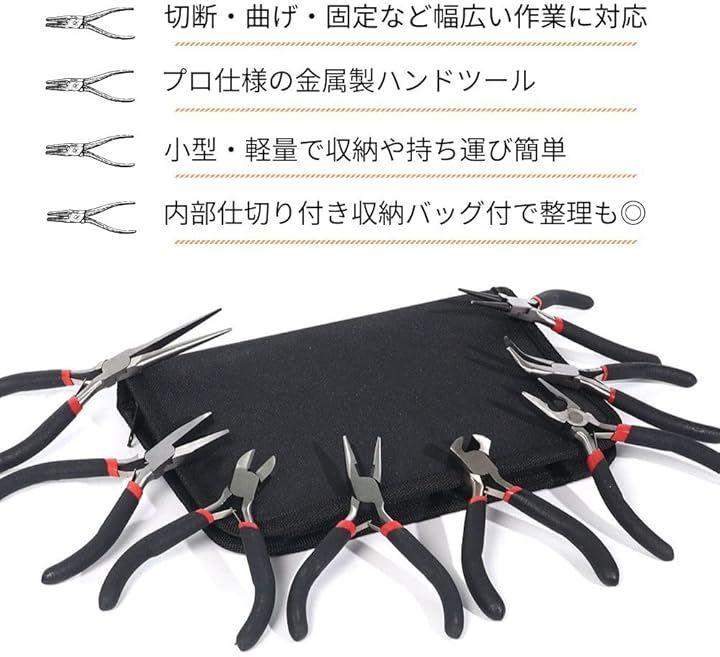 「便利なセット内容」8本の異なるプライヤーをまとめた多機能ツールセットで、切断・曲げ・固定など幅広い作業に対応します。