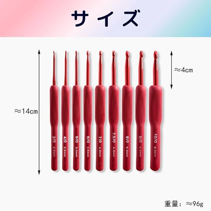 商品名:かぎ針セット(9本組) 滑り止めグリップ付き アルミ製