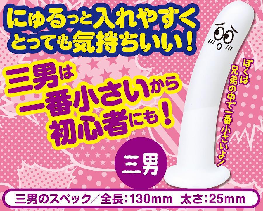 本品はジョークグッズです。その他の目的でご使用された場合の責任は一切負いません。おいらたち、ちんアナゴ三兄弟だぞ。壁や床にしっかり固定できる強力吸盤が付いて使いやすいぞ。つるつるとしたシリコン素材だから無理なく挿入できるぞ。滑らかなハイクイリティシリコン素材にゅるっと入れやすい【長男スペック】全長:180mm / 太さ:35mm「おいらは長男。 一番太くて力強いぞ。 」【次男スペック】全長:160mm / 太さ:30mm「ミーは次男。 大きすぎずちょうどいいサイジングー」【三男スペック】全長:130mm / 太さ:25mm「ぼく三男だよ。 兄弟で一番小さいから初心者でも安心でしょ」 商品サイズ (幅×奥行×高さ) :25×25×130mm 内容量:76g