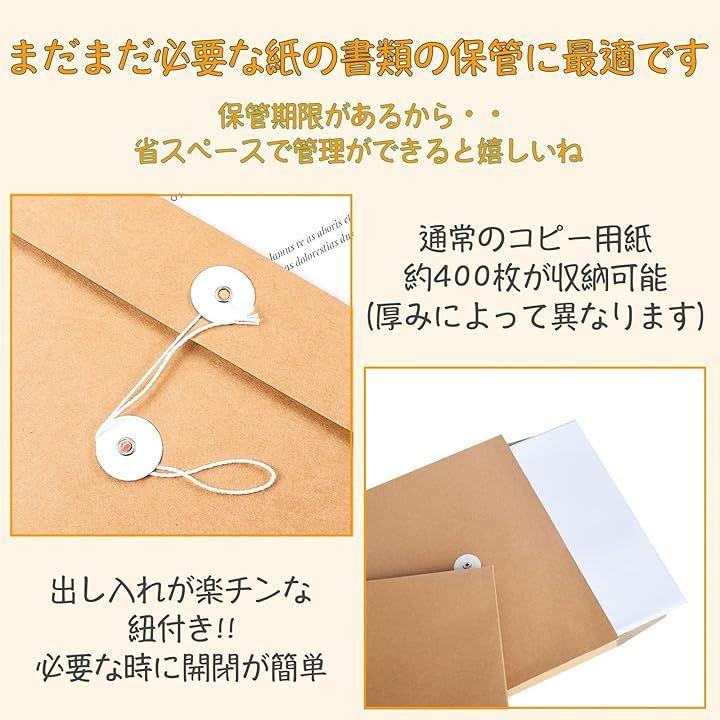 紐付き封筒は、紐を使って封をするので書類を安全に保護しながら保管できるため、オフィスなどでプライバシーやセキュリティを重視するビジネスシーンに適しています。