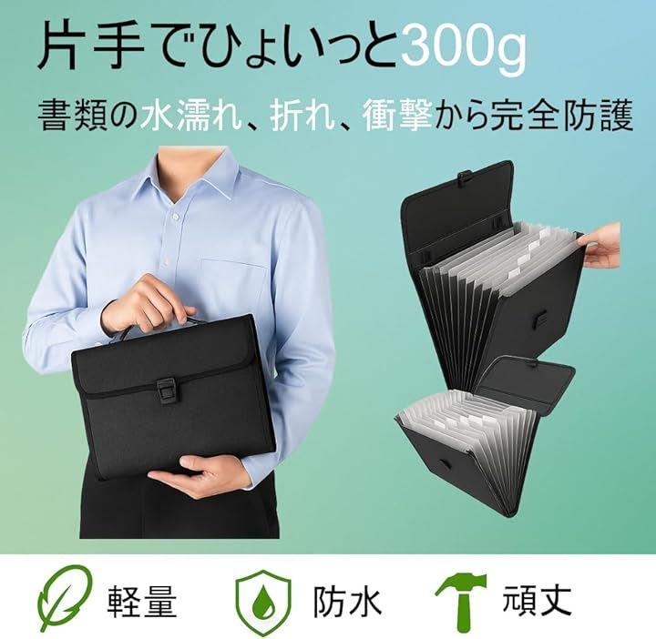 A4 13ポケット 大容量 ファイルケース 手提げ付き キャリングケース 書類整理 多機能 バッグ型 ドキュメントケース