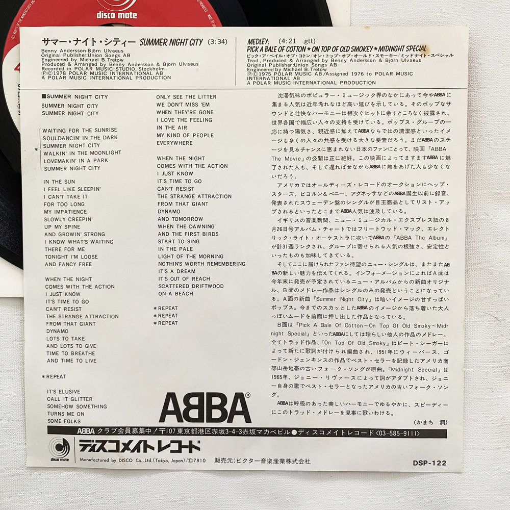 ABBA Summer Night City Medley: Pick a Bale of Cotton EP Record 7-inch Single Extended Play