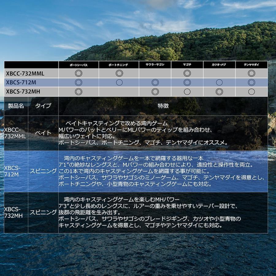 全長(ft/cm)7'1"/215.9●仕舞(cm)111.4●標準自重(g)119●先径(mm)1.65●ルアー(g)7-40●PEライン(号)0.8-2.0●テーパー/アクションレギュラーファースト●製法TAF製法●使用材料カーボン100%