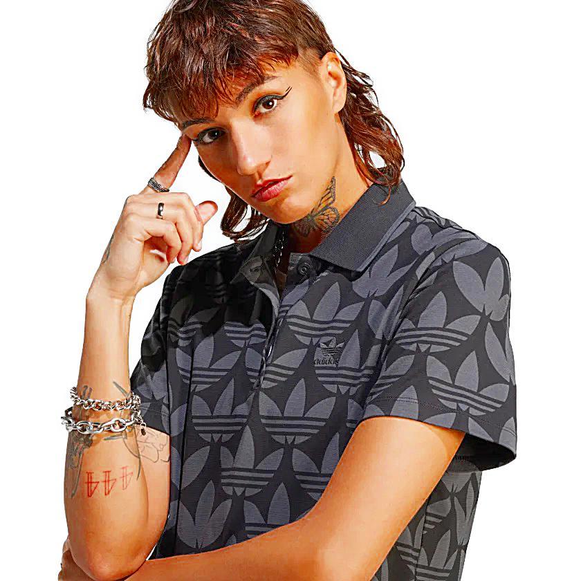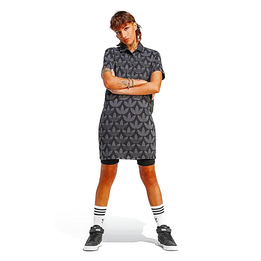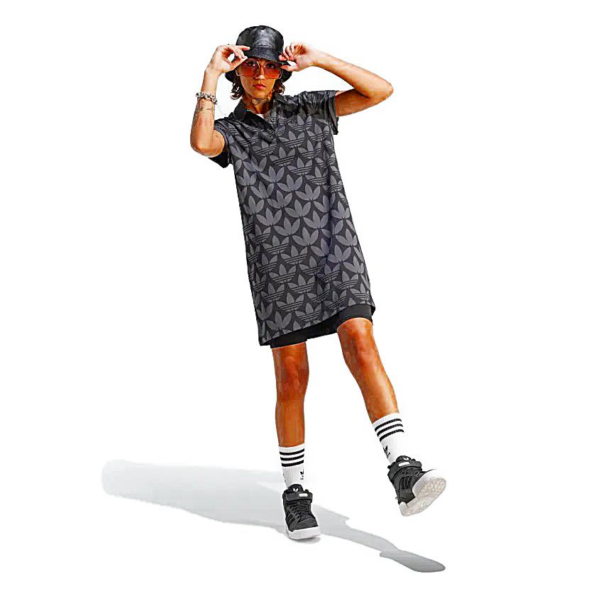 (アディダスオリジナルス) adidas Originals トレフォイルモノグラムポロワンピース ドレス レディース ストリートファッション レディース WOMEN II3183 TREFOIL MONOGRAM POLO DRESS BLACK