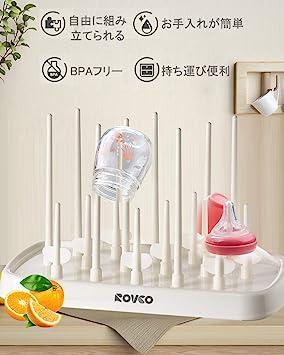 【優れた素材】PP(スタンド)、ABS(トレー)。安全性と耐久性も優れています。【多機能乾燥ラック】哺乳瓶、おしゃぶり、乳首、ボトル、などの水切りに向いている水切りツールです。【簡単収納】それぞれのスタンドは、自分で取り付け・取り外しが可能です。【持ち運び便利】折りたためるので携帯に便利(旅行先・帰省時などに)、広げてスタンドを立てるだけで簡単にご使用可能です。【サイズ】製品のサイズ:使用時:32 x 18.5 x 19cm。