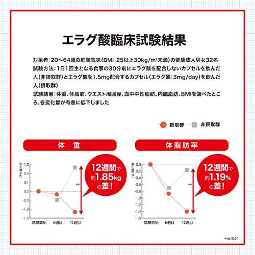 【機能性表示食品】肥満気味の方の体重・脂肪の減少をサポートするエラグ酸 【こんな方におすすめ】肥満気味、体脂肪・血中中性脂肪、お腹の脂肪、ウエストが気になる、BMIが25以上、体重が気になる 【エラグ酸の作用】①<脂肪細胞の肥大化を抑える>エラグ酸は肥満細胞を肥大化させる因子の発現を抑制します。 ②<中性脂肪を増やしにくくする>エラグ酸は血糖分を中性脂肪に変換する酵素を阻害します。 【届出表示】 本品にはエラグ酸が含まれています。エラグ酸は肥満気味の方の体重、ウエスト周囲径、体脂肪、血中中性脂肪、内臓脂肪の減少をサポートし、高めのBMI値の改善に役立つことが報告されています。 【内容量】18g(300mg×60粒)<30日分> 【1日の錠剤摂取目安量】2粒