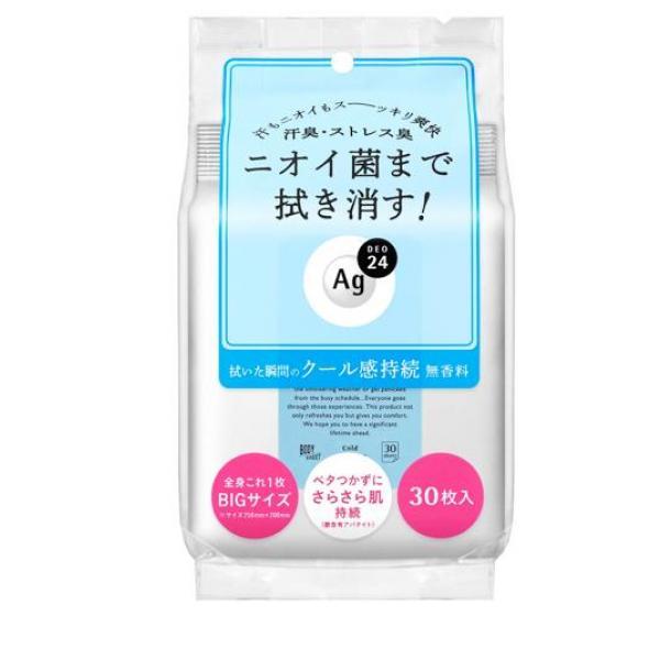 製品の特徴●Ag DEO24 エージーデオ24 クリアシャワーシート クールタイプ・無香性●超クールでひんやり爽快!汗もニオイも全身すっきり、持続型クールエッセンス配合。●汗臭・ストレス臭・ベタつき・汚れ・ニオイ菌まで拭き消す!●白くならずにさらさら肌続く(銀含有アパタイト)●冷感-3.2℃(拭いた直後の肌表面の温度)●顔・体に使える!フェイス・ボディ用。●全身これ1枚で拭ける大判サイズ(250mm×200mm)●アレルギーテスト済み。※すべての人にアレルギーが起きないというわけではありません。●エージー24 クリアシャワーシート n(クール)