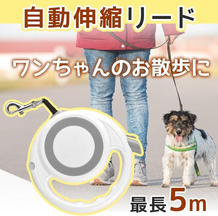 「セット内容」ペットリードx1点 「サイズ(約)」本体:15cmx16cmx3.5cm 全長:5m 「カラー」ホワイトxグレー