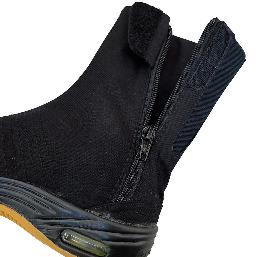 ◆面倒なコバセを無くし、ファスナーを採用した事でスピード脱着が可能になりました!◆ファスナーとストレッチ素材のコンビ使いで足にフィットしやすいので大好評です。◆衝撃吸収力に優れたエアークッションを搭載!◆軽量かつクッション性のあるEVA底に耐滑力と耐久性に優れたゴム底を組合わせた衝撃吸収構造です。◆地下足袋スニーカーという表現がいいかも、地下足袋なんだけどスニーカーのような履き心地です。◆お祭りは勿論ですが、四国八十八箇所参り、山登り、修行、ウォーキングなど、幅広いお客様に愛用されております。