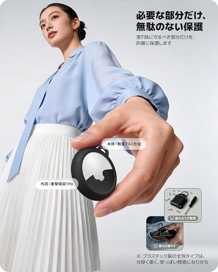 AirTagを360°保護し、落下・擦り傷・外れ・変形を徹底的に防止します。