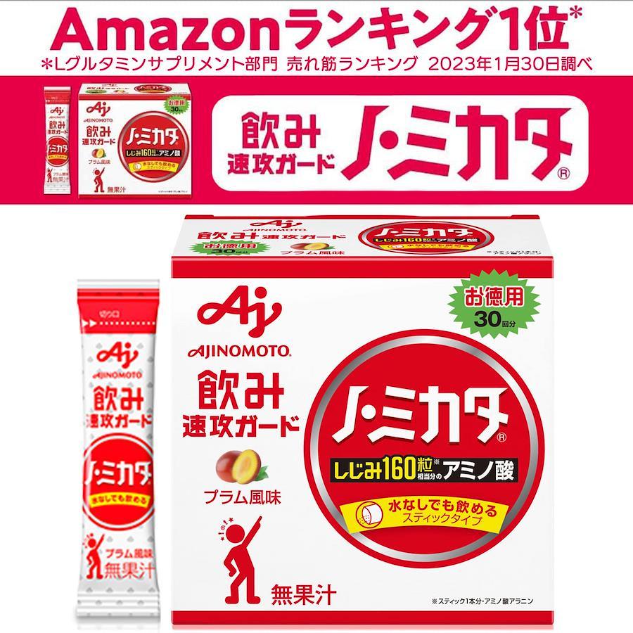 商品紹介スティック1本でしじみ160粒相当分のアラニン、およびカラダを中からカバーするグルタミンを配合。飲みやすい爽やかなプラム風味。お得な大容量品。栄養成分【栄養成分表示(1食(3g)当たり)】エネルギー:12kcal、たんぱく質:2.8g、脂質:0g、炭水化物:0~0.2g、食塩相当量:0~0.001mgアレルギー物質―使用上の注意スティック開封後はお早めにお飲みください。 水なし約30分で体内にスピーディーに吸収されるので、いつ飲んでも速攻ガード。 スティック1本でしじみ160粒相当分の飲みサポート成分アミノ酸「アラニン」、およびカラダを中からカバーするグルタミンを配合したサプリメントです。 甘酸っぱく美味しいプラム味です。持ち運びしやすいスティックタイプで、水なしで直飲みすることが出来ます。 会食、ランチ会、女子会、結婚式のパーティなど、盛り上がる前後でも盛り上がっているときでも、いつものバッグに常備しておけば、どんなときでもサッと飲むことが出来ます。 30本入りなのでご自宅でのストックや、持ち運びにも便利です。 【スティック1本あたり】 エネルギー:12kcal、たんぱく質:2.8g、脂質:0g、 炭水化物:0?0.2g、食塩相当量:0~0.001g、アミノ酸:2,800mg配合(アラニン1,400mg、グルタミン1,400m)