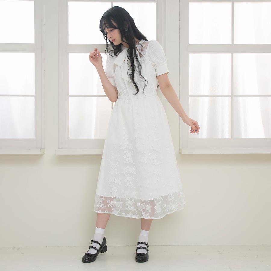 レースの透け感と大きめのリボンで程よい肌見せが叶います。