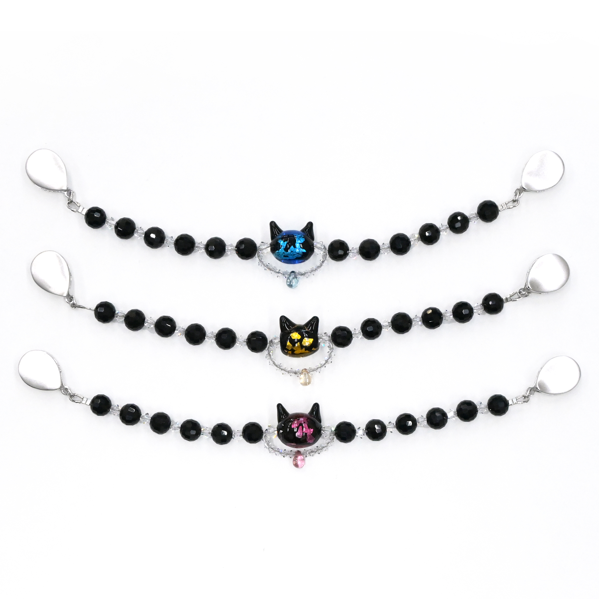 特許登録の留め金パーツを使用した羽織紐装いをワンランクアップ♪カーディガン・羽織に大活躍!ガラス玉の可愛らしいニャンコが中央に据えたストールクリップ&羽織紐。和装にも洋装にも使用できる「機能性」と「ファッション性」を兼ね備えた ストール・カーディガンクリップ アクセサリー。着物やカーディガン、ストールにお使いいただけます。特許登録の留めパーツは繊細なレースにもお使いいただけます。※ご覧いただいている画像の色合いは、お使いのディスプレイによっては多少異なって見える場合があります。