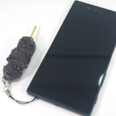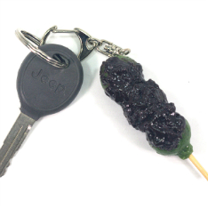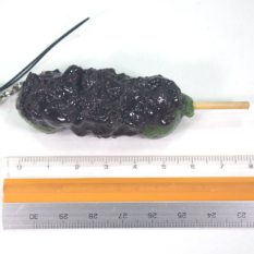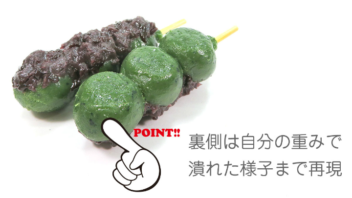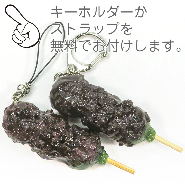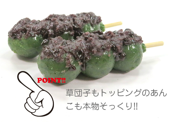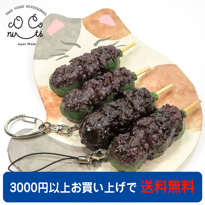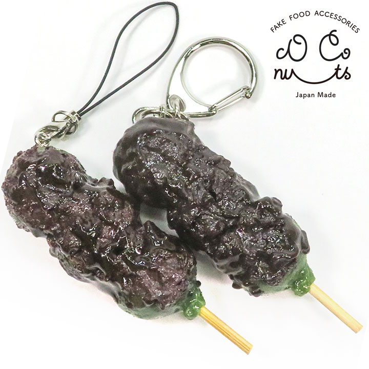 ミニサイズ(長さ約8cm)の草団子にあんこをたっぷり塗ったあん団子の食品サンプルアクセサリーです。