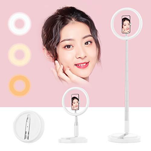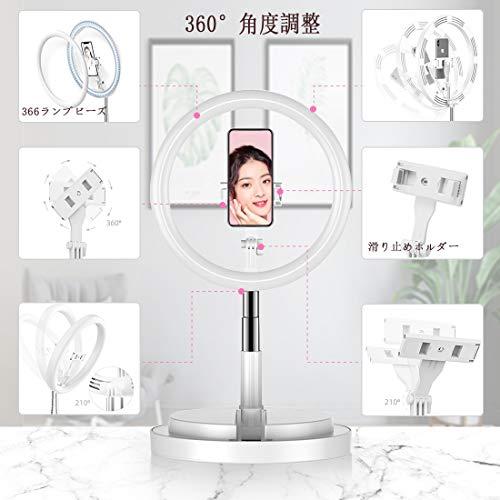 【3色モード・無段階調光】新型LEDリングライトの外径は11.4インチ(29cm)で、照明範囲が広いです。3色モードで無段階調光可能、色温度は3500K-6000Kです。周りの環境に合わせて自撮りライトの輝度と色温度を調整することができます。ABS樹脂+アルミ合金の高品質素材、きれいで耐久性を持っています。【一体式デザイン】撮影照明用ライトとスタンド一体式設計、組み立て簡単で収納便利です。折畳み状態のサイズはただ29x29x5.8cmになり、重量は1.24kgで、持ち運び便利です。スタンドは円盤デザインを採用し、底部に滑り止めゴムが付き、擦り傷、転倒等の心配はありません、市販の三脚スタンドより安定性と耐久性に優れています。【360°角度調整】卓上ライトは180度調整可能、スマホホルダーが前後180度+時計回り方向360°調整可能。リングライト スタンドは自由に伸縮可能で、58cm~168cmまで延長できます。 卓上や地面に置いて、顔や半身ても照明できます。リングライト クリップの角度調整と合わせてお好きに調整し、多様な撮影効果を実現させましょう。【USB給電・多用途】USBケーブルが付属しています。ラップトップ、PC、電源バンク、USB充電器など、USBポートをサポートするほとんどのデバイスで動作します。led自撮りライトはコンパクトで場所を問わず、美容化粧、自撮り、YouTubeビデオ、生放送、屋内照明、屋外撮影、広告写真、ストリーミングに大活躍しています。【パッケージ内容と品質保証】撮影用照明ライト本体*1、USB充電コントロール線*1、日本語説明書*1。弊社の製品は一年間の品質保証サービスを提供しています。ご使用中に何かご質問があれば、お気軽にメールでご連絡お願いいたします。?もっと見る