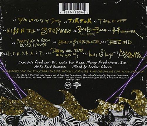 2010 debut album from the American singer/songwriter who achieved fame as featured vocalist on Flo Rida's hit single 'Right Round'. Animal was executive produced by Dr. Luke (Katy Perry, Britney Spears, Kelly Clarkson, and Avril Lavigne) and includes collaborations with producers Max Martin and Benny Blanco. The album's first smash single, 'TiK ToK', has had TV placements in the Project Runway promo spots, Melrose Place and So You Think Can Dance.