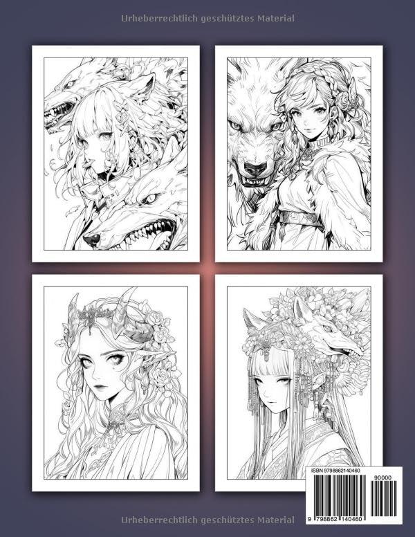 Anime Und Manga Malbuch: Erkunde die Faszination Japanischer Portraets, Drachen, Schildkroeten, Loewen, Blumen und Schae