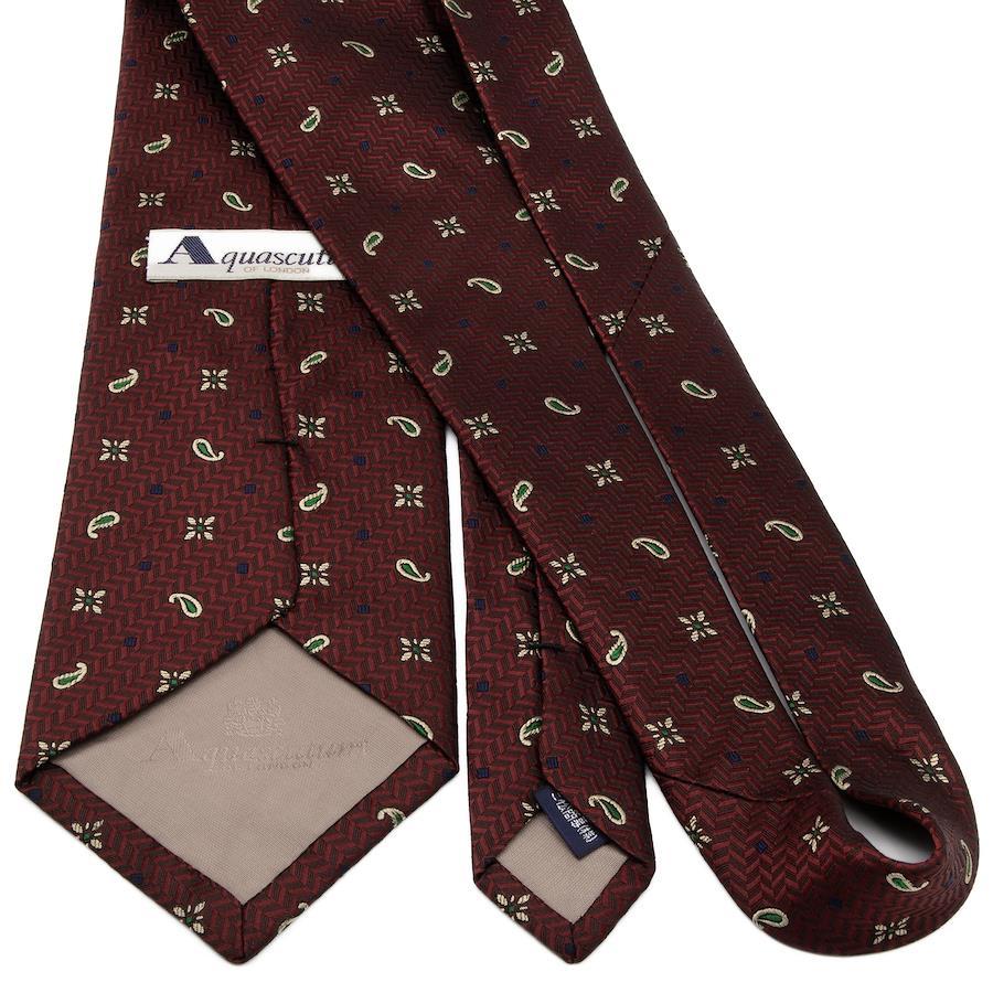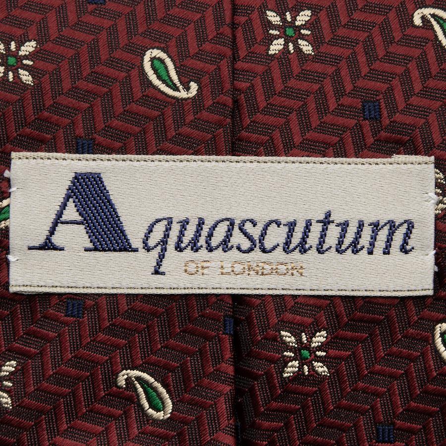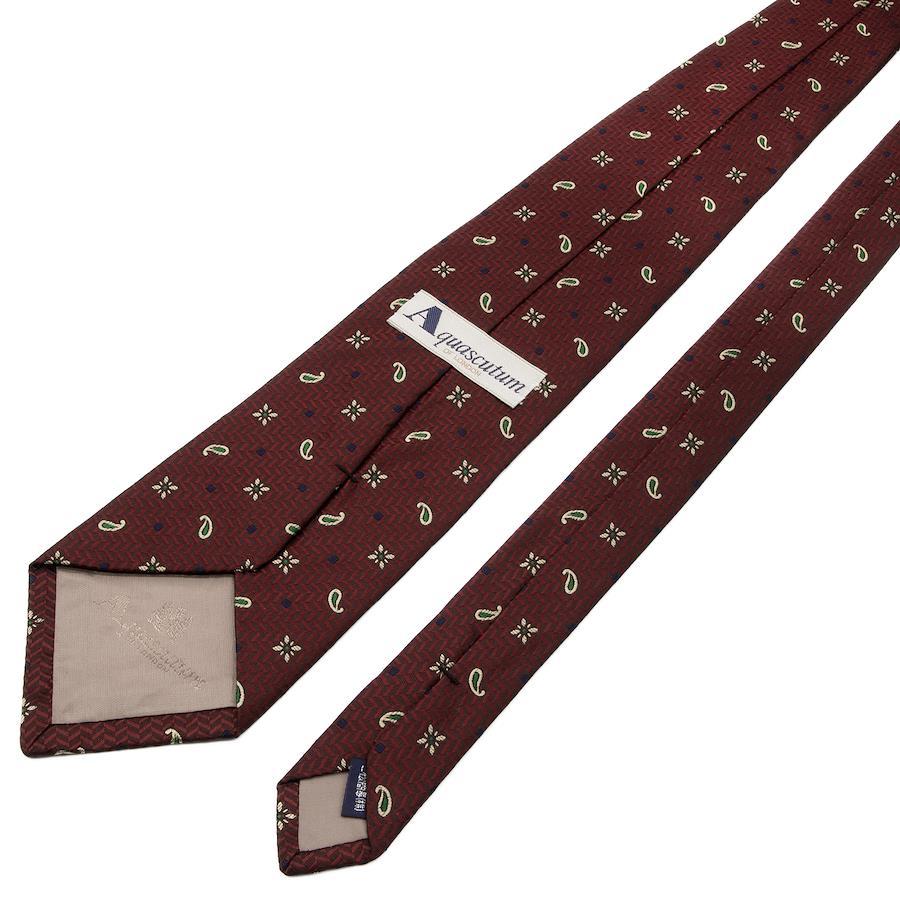 こちらは、深みのあるワインレッドが品格を底上げする、アクアスキュータムのネクタイでございます。