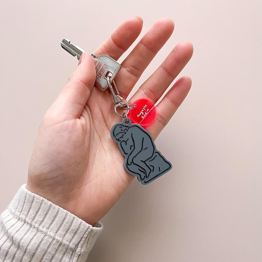 世界的に有名な名画をモチーフにしたアクリルキーホルダー。フェルメール、ミュシャ、ゴッホ、ロダン、ムンク、ダ・ヴィンチの6種類のデザインが揃い、それぞれの作品をラフなタッチでアレンジしています。