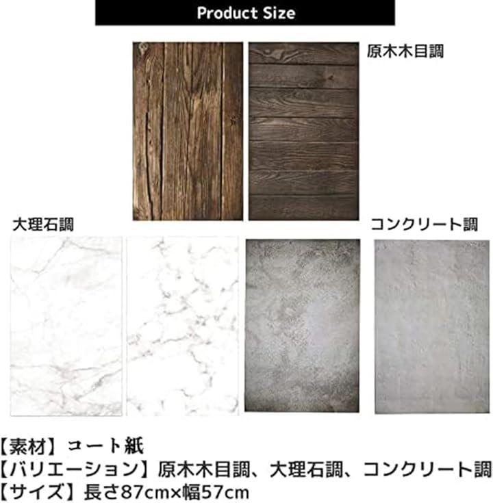 「内容数」1シート「素材」コート紙 「 バリエーション」原木木目調、大理石調、コンクリート調 「サイズ」長さ87cmx幅57cm
