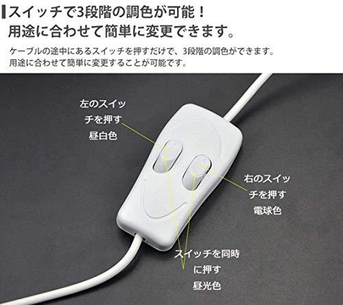 ?【3段階調色可能】ケーブルの途中にあるスイッチを押すだけで3段階の調色操作が出来るので、用途に合わせて簡単に光色を変更することが可能です。