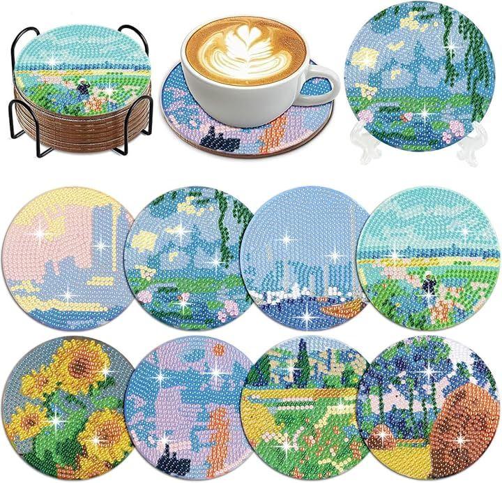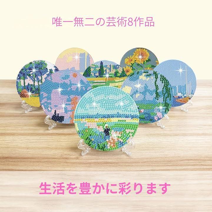 Astartia ダイヤモンドアート コースター キット DIY ダイヤモンドビーズ 5Dダイヤモンド塗装キット ダイヤモンドペインティング 初心者 大人 子供用 アートクラフト用品 8枚入 ホルダー付き