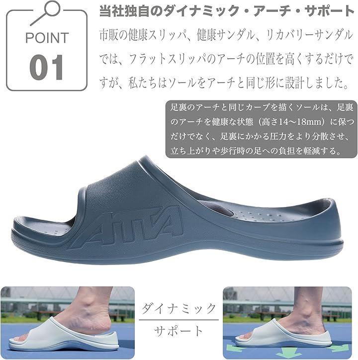 「独自のダイナミック・アーチ・サポート設計」:市販の健康サンダルやスリッパのように、スリッパ底のアーチ部分に単純な凹凸をつけるだけではありません。