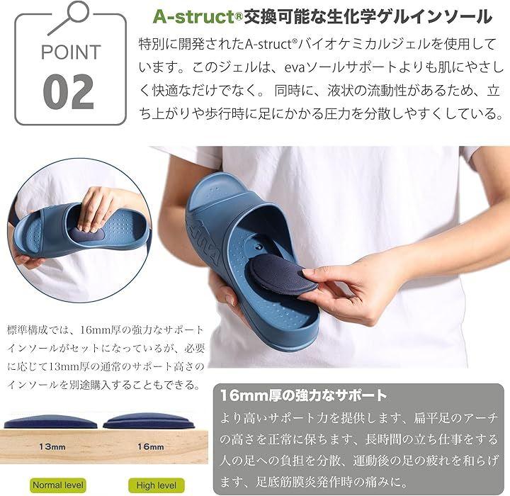 同時に、使用者は自分のアーチの高さや足裏の疲労状態に応じて、適切なジェルの高さを選んで使用することもできる。