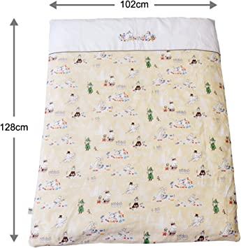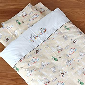 通常1-5営業日で発送:[本体サイズ] 合掛ふとん95×120cm 肌掛ふとん95×120cm 敷ふとん(2枚)70×120cm まくら25×35cm 掛カバー102×128cm フィットシーツ70×120cm ピロケース28×38cm 洗濯ネット直径38×50cmムーミンのベビーふとんセット[製造国] 日本
