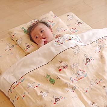 ムーミンがプリントされたベビーふとんセットです。カバーはダブルガーゼを使用しているのでふんわり柔らかくて手触りもバツグンです。カバーにはかわいい刺繍付き。合掛・肌掛ふとんには吸放湿性に優れた天然素材のテンセルを使用しており、汗かきのあかちゃんにはピッタリです。敷ふとんは2枚組になっているので、1枚ずつ洗えて便利です。中材はテイジンのV-LAPを使用。へたりにくく、体圧分散性に優れえた素材です。また、敷ふとんはハニカム素材とフリース素材の2種類なので、季節に応じて使い分けていただけます。