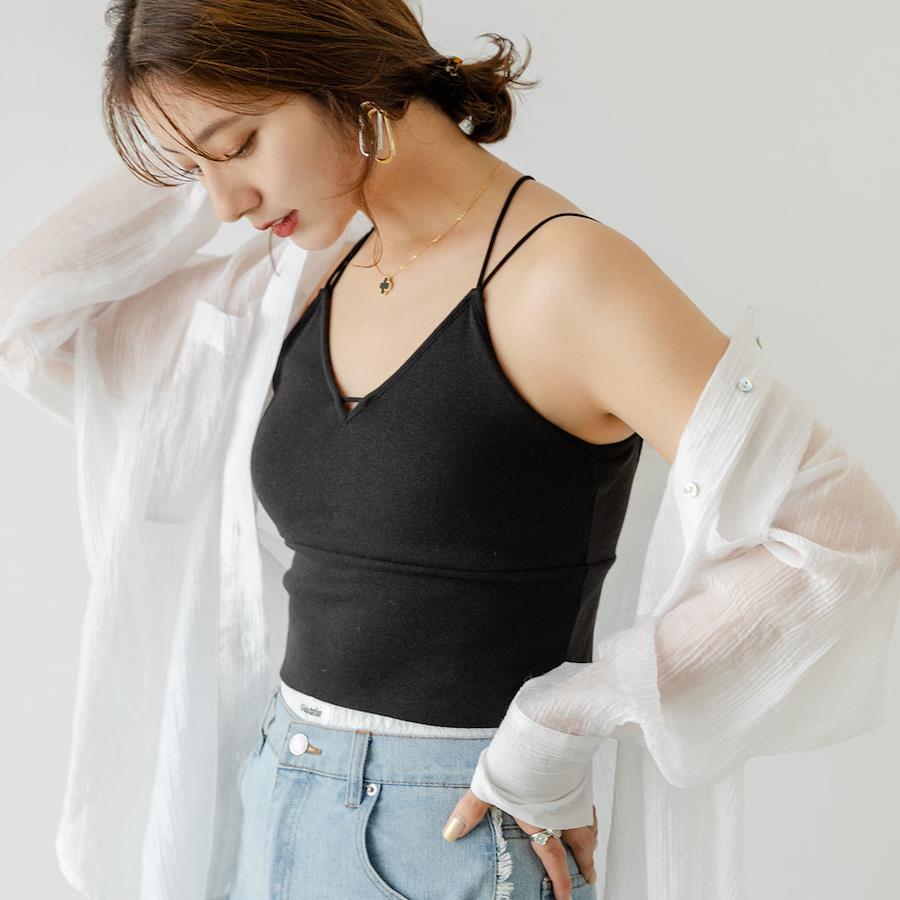 1枚持っておけばどんなシーンでも重宝するカップ付きキャミソール。