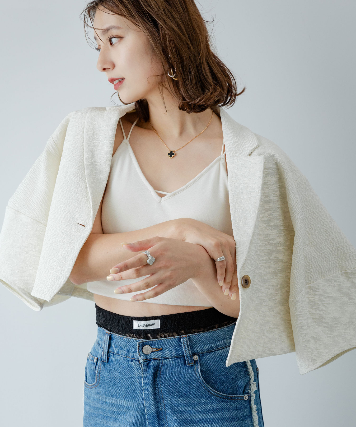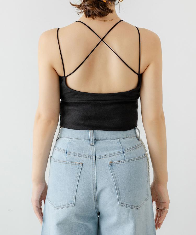 華奢な肩紐と背中のクロスデザインが女性らしい抜け感を演出してくれ