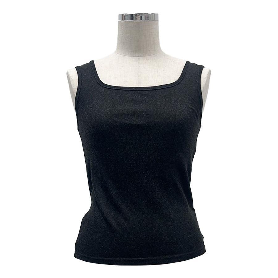 ストレッチ性のある柔らかなカット素材で仕立てた、グリッターが目を惹くタンクトップ。