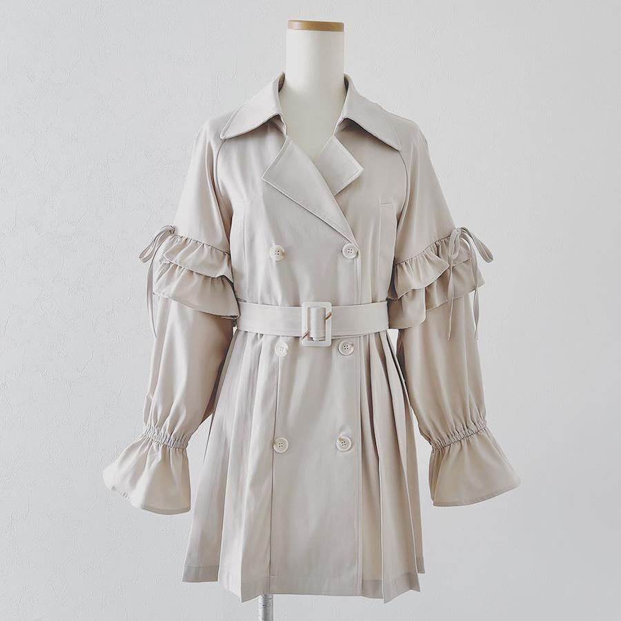 ガーリーでフェミニンなバックプリーツトレンチコートのご紹介。