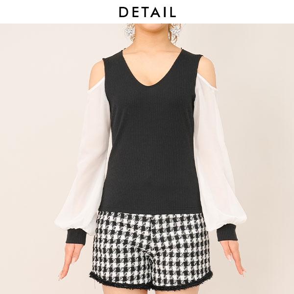 フレアスカートやショートパンツなどショート丈のボトムスとも相性です◎