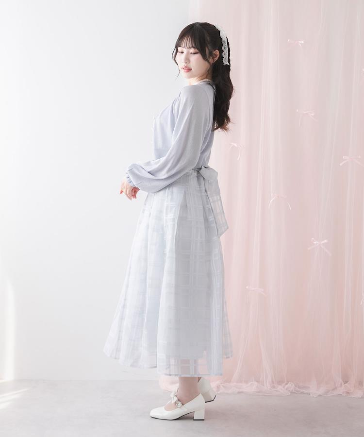 ボウタイやフリルなど甘めなトップスと合わせたコーデはもちろん、Tシャツやパフ袖のカットソー等カジュアルに外しても可愛いです♪