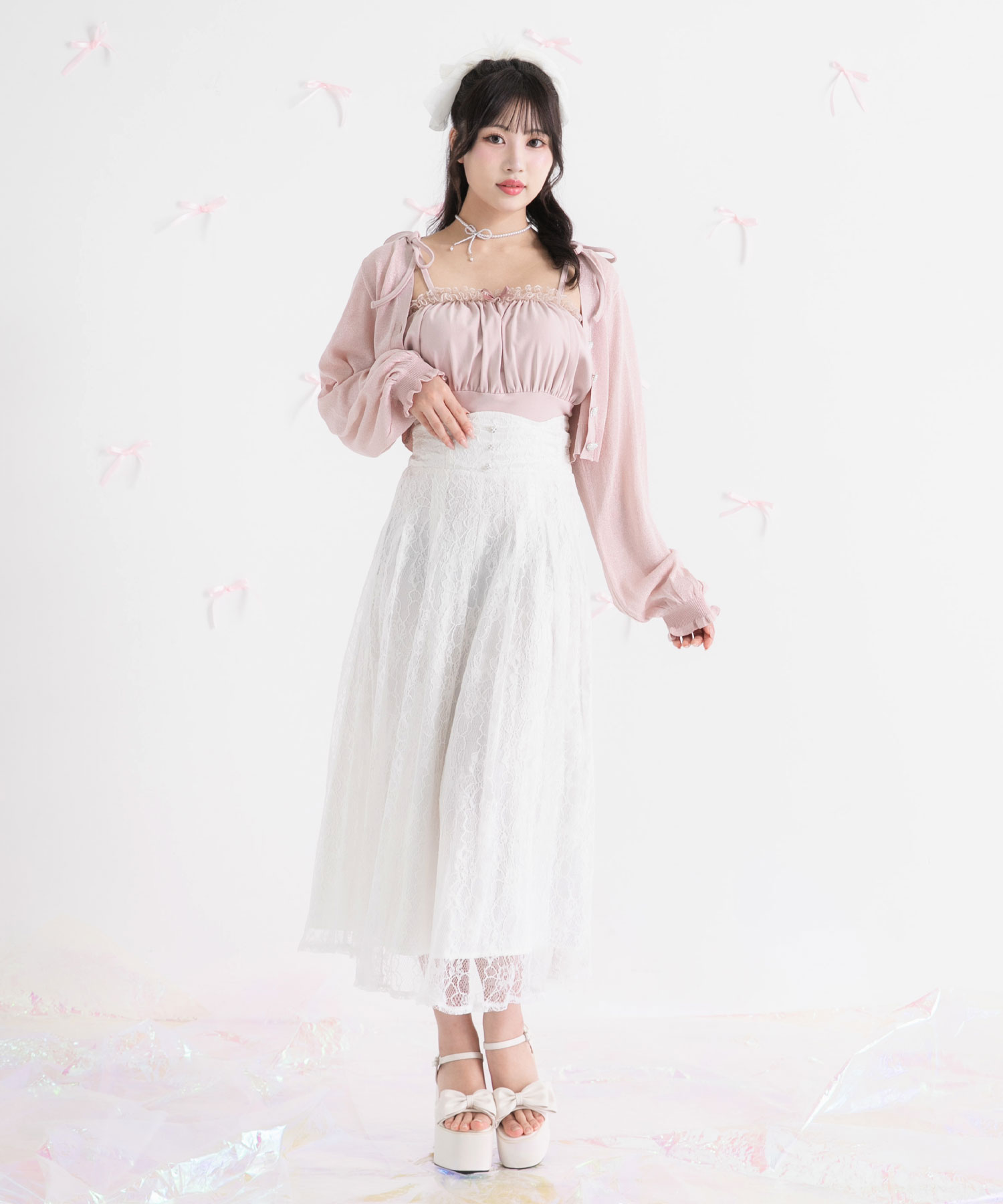 ※ウエストリボンは、一度後ろ側を前に向けて着用し、リボンを結んだあとに背中側に回転させるとリボンが綺麗な状態でご着用頂けます。