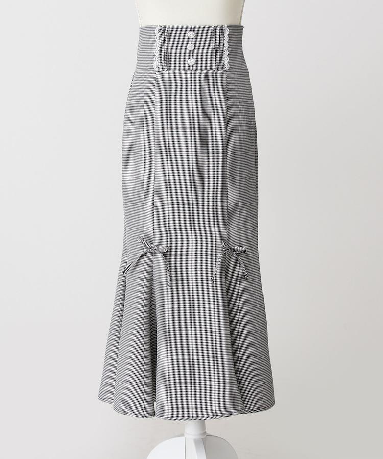 キラキラと輝く上品なハイウエストデザインマーメイドスカートが登場【デザイン】DearMyLoveから上品でかわいいマーメイドスカートが登場しました。スタイルよく見えるシルエット感にこだわりました。デザインはレース重ねデザイン、合わせやすい無地ブラック、千鳥生地の3種類×5カラーから選べます。ハイウエストデザインで中心にはキラキラと輝くパールビジューボタンがついています。後ろ部分はレースアアップデザインでウエスト部分をお好みで調整ができます。前から見えても後ろから見てもかわいく大人なデザインのマーメイドスカートに一目惚れの予感♪【素材】レース重ねの生地、無地生地、千鳥生地の3種類からお選び頂けます。本体裏地付きです。【コーディネート】上品なボウタイブラウスと相性ぴったりなマーメイドスカートです。大人っぽい雰囲気に変身し、パンプスやミュールサンダルとの相性ばっちりです。スカートはお好みのデザインをお選びください。《透け感》なし 《生地の厚さ》普通 《裏地》あり 《伸縮性》なし《生産国》中国