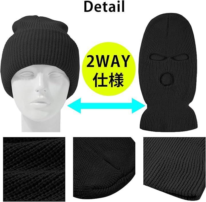 目出し帽として、顔全体を覆う使い方の他に、首元をクルクル巻けば、ニットキャップとして使うこともできます。