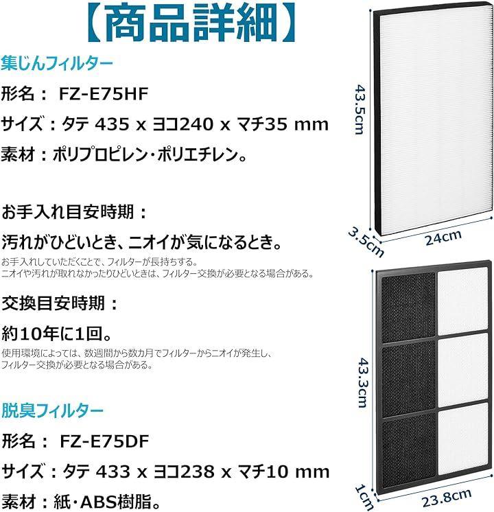 「形名」 集塵フィルター FZ-E75HF / 脱臭フィルター FZ-E75DF 。