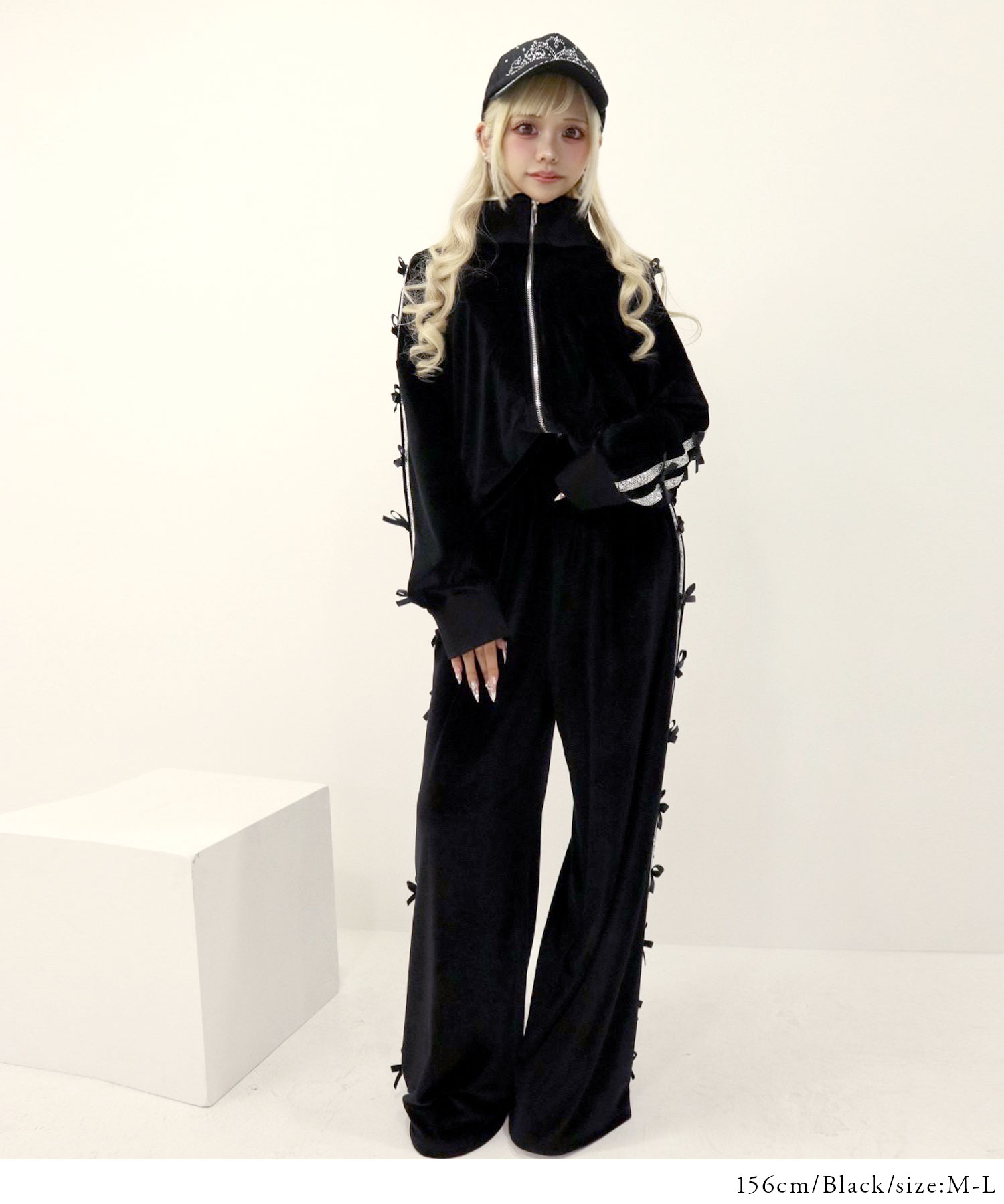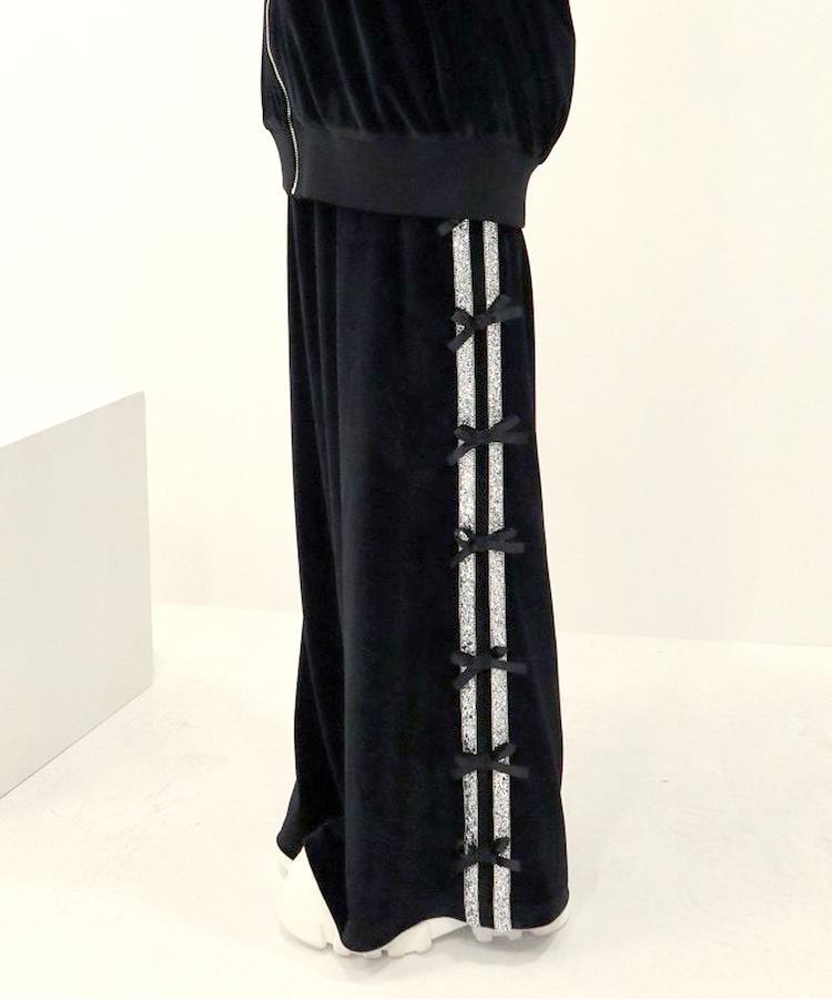 同素材のボトムもありセットアップで着用オススメ◎品番:535283 ビジューラインベロアジャージ